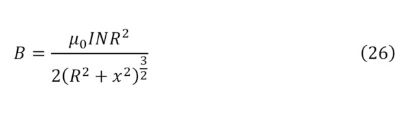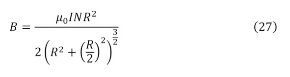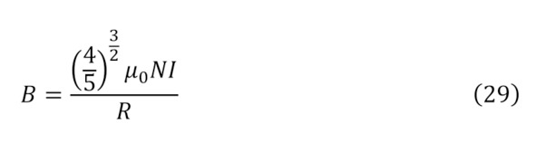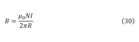 Но раз существует такая напряжённость и объяснён процесс создания при помощи зарядов магнитного поля, интересно рассмотреть обратный момент воздействия созданного магнитного поля на заряды. Тут стоит указать, что для образования магнитного поля можно воспользоваться также и природными магнитами, с изначально высокой концентрацией внутренних зарядов и их движений, за счёт природы самого сплава, либо при помощи прочих способов изменения формы электромагнита, к примеру, используя катушки Германа Гельмгольца для различных преобразований, а именно для суммарного модуля индукции магнитного поля из закона Био-Савара-Лапласа (24) или (25) для одиночного витка или для n витков (26), для случая что расстояние по оси от катушки до центра равняется половине радиуса (27), для двух катушек (28—29), или круглого соленоида, так называемого вида электромагнита – тороида (30), при том условии, что внутри него магнитное поле полностью отсутствует, а есть оно только внутри округлого проводника, на коем и намотана проволока.