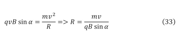 Таким образом, если свободный заряд попадает в магнитное поле, то он попадает под воздействие силы магнитной индукции под действием определённой силы Лоренца (31), под действием которого с учётом создаваемой центробежной силы (32), заряд начинает своё вращение с радиусом (33).