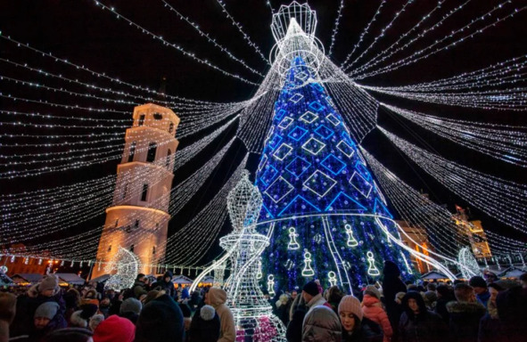 Lithuania’s main New Year’s beauty lights up her lights on Cathedral Square. Locals and tourists are already used to the fact that every year the authorities of Vilnius surprise with the unusual decoration of the main Christmas tree of the country.