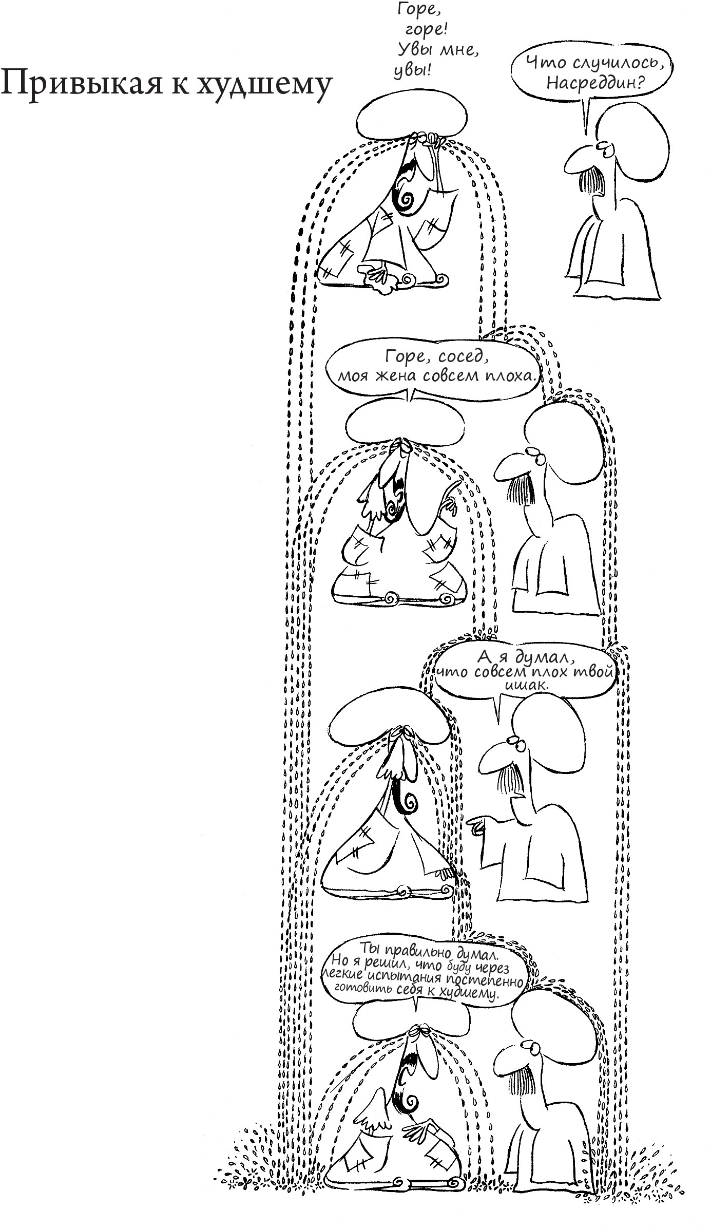 – Я пробовал! – воскликнул Насреддин. – Я кормлю мою жену и моего ишака совершенно одинаково. Они получают то, что хотят.