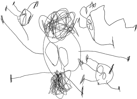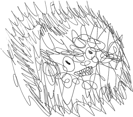 Я попросил подростка нарисовать то, что он называет своими галлюцинациями (рис. 6). И скажу, что я не ожидал такого… В этом рисунке кто-то увидел определенный персонаж сериалов…