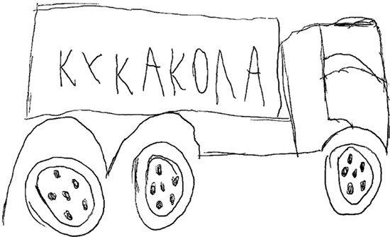 Ко мне пришел 6-летний мальчик – для прохождения профилактического осмотра при оформлении в школу. Я попросил его нарисовать то, что он хочет. «Я нарисую фуру», – сказал маленький пациент. И он это сделал (рис. 22). Несомненно, у этого мальчика будут проблемы с чистописанием и русским языком.
