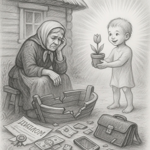Печальная истина этой истории заключается в том, что мы все, без исключения, находимся в иллюзии. Хотим мы того или нет, но каждый из нас погружён в собственные обманы, пусть даже и не такие явные, как у жителей свалки. Да, возможно, наша иллюзия выглядит менее гротескно, но её суть остаётся той же.
