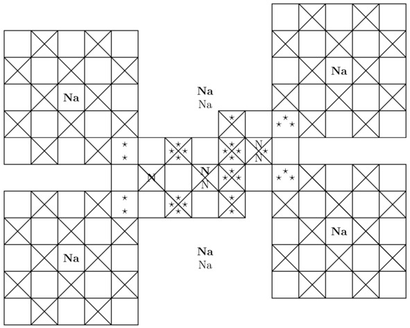 Как известно, общее количество треугольников Tr (H) для водорода H было найдено в примере 3.4. Кроме того, искомая величина Tr (Na) примет натуральное значение, численно равное Tr (Na) =12, поскольку в сложившейся ситуации 3d10 подуровень, относящийся собственно к самой орбитальной диаграмме каждого из надлежащих катионов натрия Na+, окажется заполненным ровно наполовину. Далее определим сумму крестиков Kr (N) для азота N, тогда: