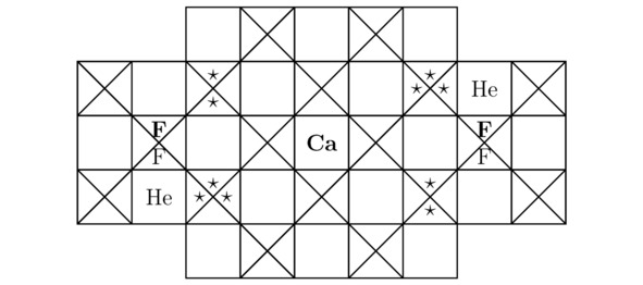 Примечательно, что сумма треугольников Tr (He) для гелия He была вычислена в примере 3.1. Напоследок изобразим на чертежах 3.3 и 3.4 2 проекции элементарной ячейки дифторогелида кальция CaF2He на соответствующие координатные плоскости, тогда: