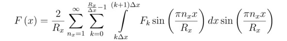 здесь x∈ [0,Rx]; F (x) – произвольно заданная величина (F (x) ∈C); 0 и Rx – координаты граничных условий Дирихле.