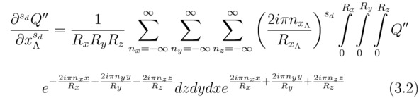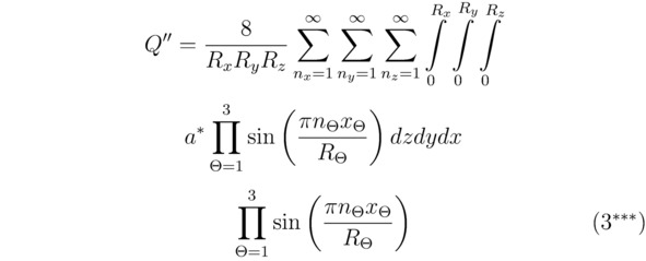 Как известно, общее аналитическое решение Q`` (Q```=Ψ) всякого трёхмерного линейного дифференциального уравнения является суммой всех частных решений Q``111,…,Q``nxnynz,…,Q``∞∞∞ по nx, ny, nz. В силу чего: