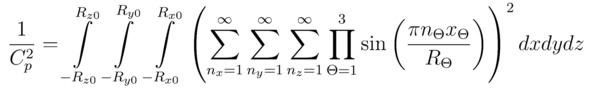 Под обозначением Ψ* понимается комплексно сопряжённая волновая функция. Плотностью вероятности локализации элементарной частицы в точке с координатами x,y,z называют математическое соотношение ΨΨ*. В то же время, исходя из тождества ограниченности вероятности ∫-Rz0Rz0∫-Ry0Ry0∫-Rx0Rx0ΨΨ*dxdydz=1, возможно рассчитать действительный множитель Cp=const для всех p∈N (когда Rx0=RxOx/2, Ox∈N; Ry0=RyOy/2, Oy∈N; Rz0=RzOz/2, Oz∈N; Ox-> ∞; Oy-> ∞; Oz-> ∞), следовательно: