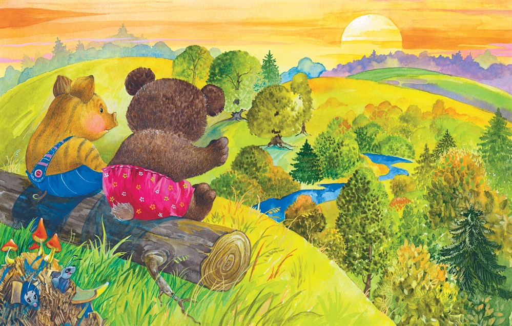 – Интересно, где же всё-таки ночует наше солнышко? – спросил медвежонок у кабанчика. Они были большими друзьями и под конец дня частенько сидели на опушке леса и разговаривали.