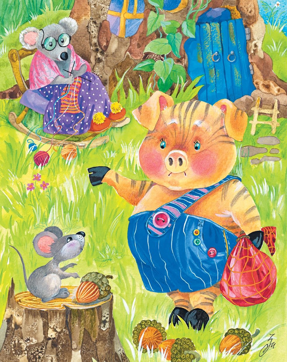 Быстрее всех добрался до своей цели – до мышиной норки – Хрю-хрю. Мышонок как раз играл с желудями в тени огромного дуба. Увидев приятеля, он радостно пропищал:
