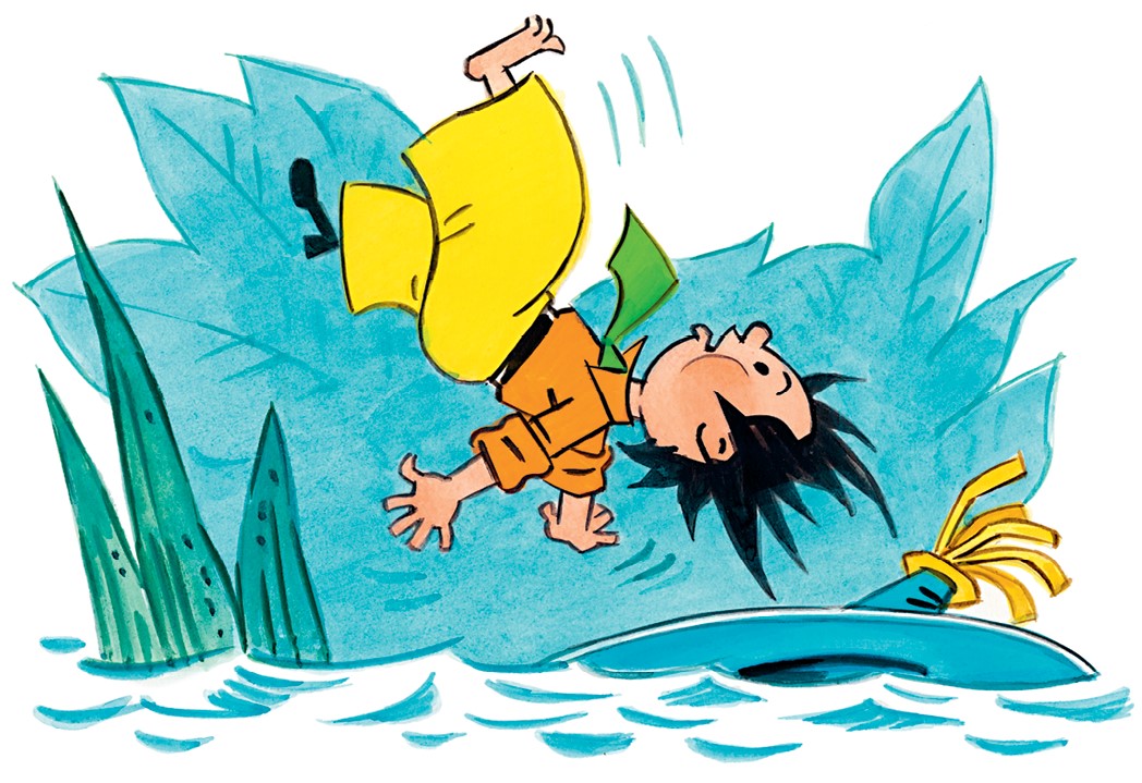 – Ерунда, он отлично плавает, – успокоил всех Торопыжка. – Видно, его просто снесло течением.