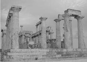 Жемчужина Эгины – живописный и довольно хорошо сохранившийся периптер храма в Афайе, построенный в 490 г. до н.э. Сохранилась большая часть внешней колоннады из каннелированных дорических колонн, несущих антаблемент из триглифов и метоп, часть стен целлы и ее внутренняя двухъярусная колоннада, меньшие колонны верхнего яруса которой лежат на антаблементе нижнего. Два яруса колоннады были большой редкостью в античных храмах, поэтому Афайя является уникальной постройкой античной эпохи.