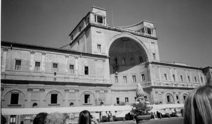 Современный ансамбль Ватиканских дворцов, состоящий из ряда отдельных зданий, начал возводить в 1503 г. Браманте, приложивший руку и к перестройке собора св. Петра. По проекту, зимние дворцы должны были быть соединены с виллой Бельведер посредством обширного внутреннего двора, окруженного крыльями нового дворцового комплекса. Между дворцом и Бельведером Браманте распланировал 3 террасы, расположенные на разных уровнях, поднимавшихся к Бельведеру. Террасы были замкнуты 2 галереями, соединившими дворцы с Бельведером, однако позже их застроили, ближайшую к дворцам террасу замкнула Ватиканская библиотека, а следующую – здания дворца Кьярамонте (Браччо Нуово), образовав 3 независимых внутренних двора.