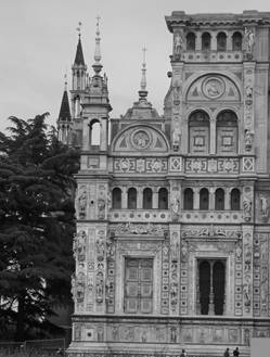 Чертоза ди Павия. В окрестностях Милана в 1396 г. герцог Джангалеаццо Висконти основал монастырь для 12 монахов-картезианцев (Чертозу), который должен был стать семейной усыпальницей рода Висконти. Монастырь строили те же мастера, что и Миланский собор, основной этап строительства был завершен к 1452 г. Монахи-картезианцы при пострижении давали обет молчания и уединения. Они занимались науками в своих кельях и собирали лечебные травы, собираясь вместе лишь на церковные службы.