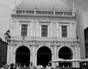 Площадь делла Лоджия, самая красивая площадь Брешии, создана в венецианском стиле и как будто перенесена сюда прямо из Венеции. Она была распланирована в 1433 г., для чего снесли целый средневековый квартал. В конкурсе на ее застройку принимали участие знаменитые архитекторы Сансовино и Андреа Палладио. Центральное место здесь занимает ренессансное беломраморное палаццо Лоджия, в создании которого в 1492-1570 г.г. принимал участие архитектор Палладио. Двухэтажное здание дворца с высокой выпуклой четырехскатной крышей открывается аркадой из трех полукруглых арок, которым, следуя четкой структуре всего здания, характерной для зрелого ренессанса, на втором этаже соответствуют три прямоугольных окна. Арки фланкированы пилонами с полуколоннами, перетекающими наверху в сдвоенные пилястры. Каждый ярус завершается скульптурным фризом, а крышу окружает изящный парапет. Благодаря полукругым аркадам, опоясывающим площадь, а также скрывающейся за зданием ратуши громадой собора, она кажется венецианской площадью Сан-Марко в миниатюре, которой, несмотря на нехватку столичного венецианского размаха, все же удалось сохранить милое провинциальное обаяние.