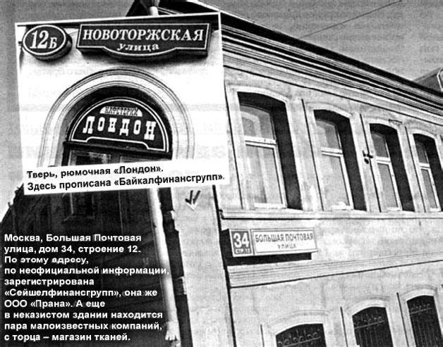О «Байкалфинансгрупп» известно немногое. Компания эта зарегистрирована в Твери по адресу: Новоторжская, дом 12б. Уже на второй день российские СМИ наперебой рассказывали о том, что по тому же адресу зарегистрировано еще 150 компаний и что ни вывески, ни офиса «Байкалфинансгрупп» в здании обнаружить не удалось. По всем признакам, вышеназванная компания была создана специально для участия в аукционе по продаже «Юганскнефтегаза». Вопрос только – кем?
