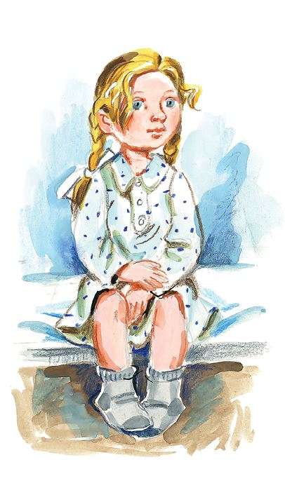 У Гули дрожали губы и подбородок, но она крепилась и не плакала, хотя ей было всего только восемь лет.