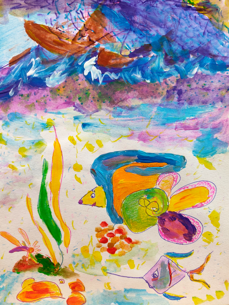 Рыбка Море жила на большой глубине в старинном корабле. На этом месте обитали когда-то её пра-пра-бабушки и пра-пра-дедушки. Вокруг было множество разноцветных водорослей, служивших пищей и парком для прогулок. У Море было много друзей, совсем разных и непохожих. Рядом жили более крупные рыбы. Одни из них были мирные, другие – хищники, которых стоило остерегаться.