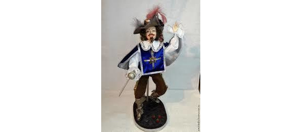 Вдруг на площади огромной,На помосте, сбитом ровно,Глашатай сочный басВысший огласил указ:– От тоски, печали, горя —Дочь царёва не глаголет.Кто за ночь и день-деньскойРечь вернет ей и покой,Тот ей станет мужем верным,Молодым царем примерным.Кто не сладит с немотой —Тот простится с головой.Как тут быть – решает Слава:– Или плаха или слава.И стучится во дворецЗлатокудрый молодец.В дырках, пятнах и заплатахВходит в девичьи палаты.Не сводя с принцессы глаз,Он такой заводит сказ:– Знаю, думаешь, что птахаКудри сам кладет на плаху.Знаю я на что иду,Не надеюсь на судьбу.И лицо твое девичье,Не сердись, мне безразлично.Лишь хочу рискнуть главой,Чтоб талант проверить свой.Много есть историй в мире.Как-то раз в одном трактире,Где сидел я как бобыль,Слышал вот какую быль:– Солнце за день утомилось,И за поле укатилось.Сели в травку, где ручейПять седых бородачей.Первый кукольник был знатный,А второй – портной занятный.Третий, самый молодой —Был сапожник удалой.А четвертый, самый старый —Парикмахер был бывалый.Пятый, средь путей дорог —Был безвестный педагог.Их в пути свела не дружба,Не монашеская служба.Каждый волен был в делах,В рассужденьях и словах.Вот прошел их ужин скудный,Разговор вечерний нудный.Стали филины летать,Подошло им время спать.Кукольник промолвил тихо:– Чтоб не знать какого лиха,Два часа я посижуИ портного разбужу.Все уснули, только мастерНожик вынул и фломастер.Деревяшку стал пилить,Подрезать, сверлить, скоблить.Два часа прошло как в сказке,Разбудил портного мастер.Тот увидел сквозь кустыКуклу дивной красоты.Глазки карие большие,Плечи крепкие, крутые.Словно юный мушкетер —Добр, весел и хитер.Из мешка достал в момент,Свой портняжный инструмент.Быстро выкроил камзол,Вышил золотом узор.А его сменил сапожник —Шпагу сделал он и ножны.Сапоги ему стачал,Шляпу, пояс подогнал.– Стал будить он брадобрея:Просыпайся поскорее.Тот, поднявшись, сделал в мигЗлатокудренный парик.Сам постригся и побрился,И с учителем сменился.Тот на вахту заступил,Глянул в небо – загрустил.Вдруг увидел мушкетера,Шпага, шляпа, пояс, шпора.Стал он куклу обучать,Говорить и фехтовать.А с рассветом все поднялись,Глянули и диву дались.Мушкетер их фехтовал,На вопросы отвечал.Ну, совсем как человечек,Ростом разве что кузнечик.Стали спорить до изморуКто хозяин мушкетеру.Долго ссорились, ругались,Чуть ли все не передрались.И решили, наконецОбратиться во дворец:– Мы всему расскажем свету,Как создали куклу эту.А кому принадлежит,Пусть царь батюшка решит.Царь – великий и светлейшийМировой судья мудрейший,Оглядел весь тронный зал,И такую речь сказал:– Кукла дивна – спору нету,Лучше нет на белом свете.Пусть тому принадлежит,Кто придал блестящий вид.Хороши лицо, одежды,И фехтует, не невежда.Сапоги как у царя,Все как у богатыря.Но всего к лицу милее —Кудри – сердце брадобрея.Куклу, я решил сказать,Нужно брадобрею дать.