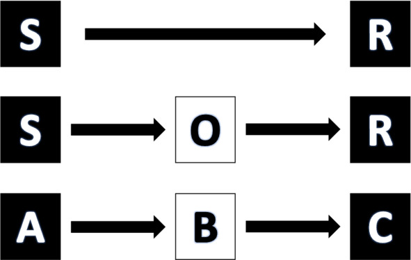 Таким образом, ключевой переменной, под углом зрения основателей, представителей и последователей когнитивно-поведенческой психотерапии, является мышление, обуславливающее эмоциональные, телесные и поведенческие реакции человека. Иными словами, реакции возникают не из-за непосредственного воздействия стимула, как считалось ранее в поведенческой терапии (S→R). Однако уже И. П. Павлов подчёркивал, что люди гораздо более сложны, чем животные, поскольку поведение человека обуславливается также и второй сигнальной системой, иными словами, мышлением. Как пишет Е. А. Ромек, человеческое «поведение управляется извне, посредством знаков, или искусственных стимулов, которые первоначально используются другими людьми (родителями, воспитателями и т.п.), а затем интериоризуются. Будучи усвоенными, искусственные стимулы становятся внутренними средствами регуляции мышления, чувств, всей системы поведения индивида» (Ромек, 2005). Между стимулом и реакциями важное значение имеет организм (S→O→R), а именно отношение человека к тому или иному активирующему событию (A – activating event) в виде его мыслей и убеждений (B – beliefs), порождающих эмоциональные, телесные и поведенческие последствия (С – consequences). Модель А-В-С является разработкой А. Эллиса и представляет собой методологический базис рационально-эмоционально-поведенческой терапии. Таким образом, «человека реагирующего» (S→R), рассматривающегося в поведенческом подходе, сменил «человек думающий», представленный в когнитивной модели (S→O→R, или А→В→С) (рис. 3).