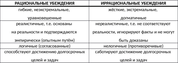 Таб. 2. Отличия рациональных и иррациональных убеждений