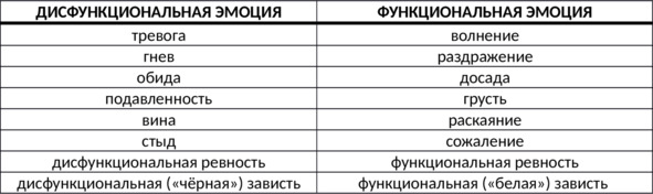 Таб. 3. Качественные отличия дисфункциональных и функциональных эмоций