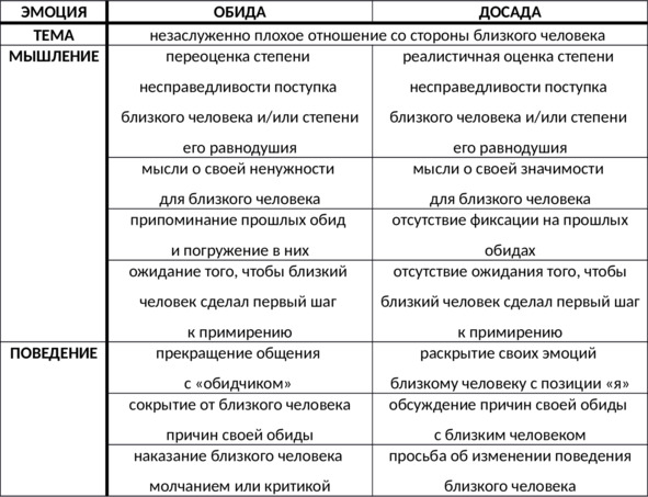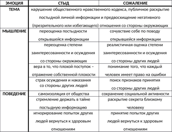 Таб. 10. Сравнительная характеристика стыда и сожаления