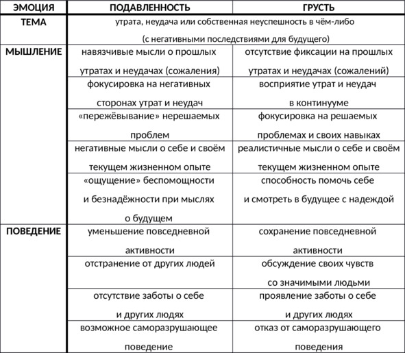Таб. 8. Сравнительная характеристика подавленности и грусти