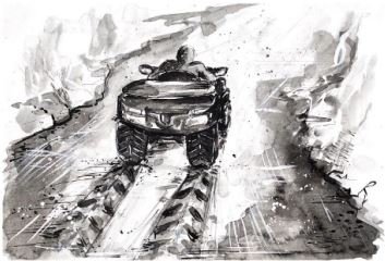 Удар пришелся по левому борту на заднюю ось. Камень размером с горного барана с легкостью сбил квадроцикл с траектории и начал заваливать его на правый бок. Стив попытался выровнять свою машину, поднявшись на ноги и всем телом наклонившись в противоположную падению сторону. Но пострадавшие от удара задние оси квадроцикла уже не были такими же ровными как в начале подъема и беспомощно крутили колеса в воздухе. Целиком завалившись налево, Стив все же поставил своего «коня» на все «лапы», но еще один камень, прилетевший почти в центр квадроцикла, все-таки опрокинул и машину, и Стива. Тяжелый квадроцикл поддался силам гравитации и, сделав несколько оборотов вокруг своей продольной оси, начал скатываться вниз по склону увлекая за собой ездока, пристегнутого к седлу карабином.