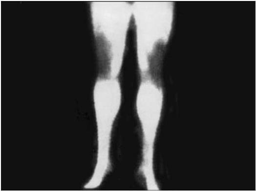 Рис. 3 в. Термограмма нормальных коленных суставов. Их контуры ровные, симметричные, со сниженным теплоизлучением