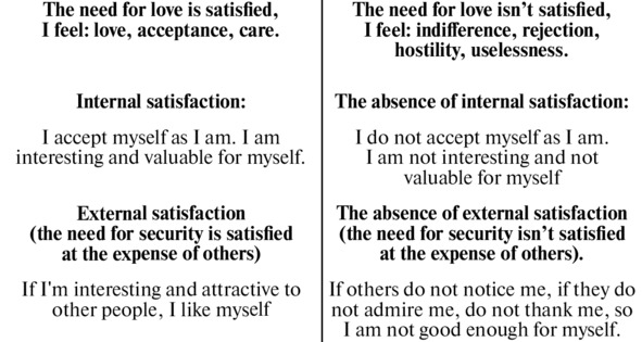A man needs to be loved, understood, recognized, respected and be close to someone; he also needs to be successful in business, studies and work; has an opportunity to fulfill his potential, develop his abilities, improve himself, respect himself. The general law here is simple: “A positive attitude towards oneself and satisfied needs are the basis of psychological health.”