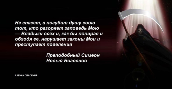 Не спасет, а погубит душу свою тот, кто разоряет заповедь Мою – Владыки всех и, как бы попирая и обходя ее, нарушает законы Мои и преступает повеления. Преподобный Симеон Новый Богослов