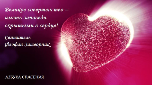 Когда заповеди в сердце, то исполнение их идет неопустительно и притом в самом благообразном и привлекательном виде. Великое совершенство – иметь заповеди скрытыми в сердце! Святитель Феофан Затворник