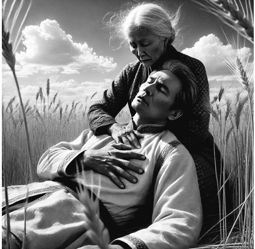 Как будто он это только и ждал, Сагын вдруг осел и нелепо повалился, подгребая под себя охапку густых стеблей зрелой пшеницы. Подозрительно раскинув руки, мужчина лежал на золотистом ковре. Дамежан бросилась к сыну и склонилась над его уже бездыханным телом…