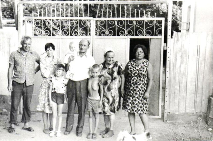 На фотографии – в верхнем ряду дядя Серёжа с женой Антониной и дядя Петя (братья Бати – отца Виктора), я (Ираида) и Наташа – младшая дочка дяди Пети.