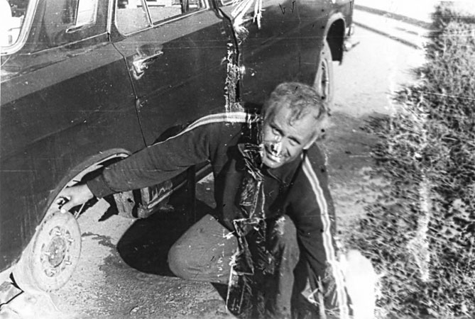 Мы обменивались одним нам известным паролем – "Похожи?"… На нашем пути они не встретились, но, тем не менее, ночевать мы остановились около военного шлагбаума. (Здесь дежурили 7 солдат. Сменяют их каждую неделю, а проезжих машин не бывает месяцами…).