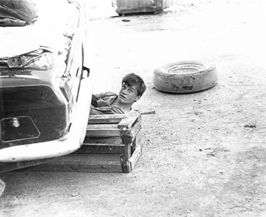 Рессора не снималась. Машину подвесили на кирпичах. Витя, собственно и не знал с чего начать. А Виталик знал, но маленький, худенький, хоть и ловкий, но слабенький, никак не мог справиться с рессорой.