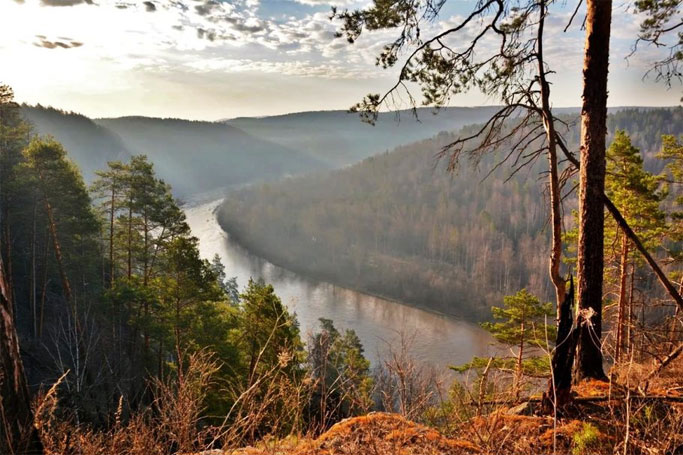 Сел за руль я. Где-то в Уральских горах заезжали в городок Юрюзань, стоявшим на одноимённой речке.