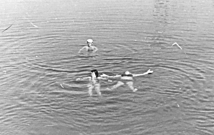 Нашли его быстро. Оно в самом городе. Озеро не очень глубокое, но в середине – с головкой, а так в основном – от щиколоток до плеч. Вода у берегов – грязная. В середине озера – вода холодная: то ли ключи бьют, то ли работают трубы, нагнетающие воду. Пляж – мелкий гравий, и песок, раскалённый от солнца. Но зато есть навесы с лавочками. Мы там разделись, поели виноград.