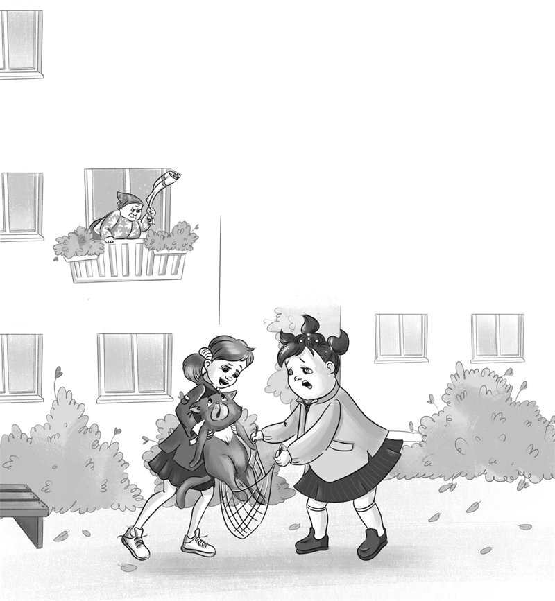 – Ах вы живодёрки! – раздался громовой голос сверху. – Хулиганки! А ну отпустите Маркиза! Вот я сейчас спущусь и покажу вам!