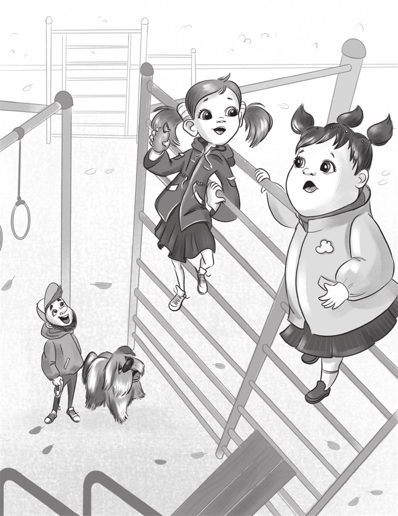 И они, не сговариваясь, с визгом понеслись к ближайшей площадке, на которой высилась шведская стенка со всякими спортивными прибамбасами.