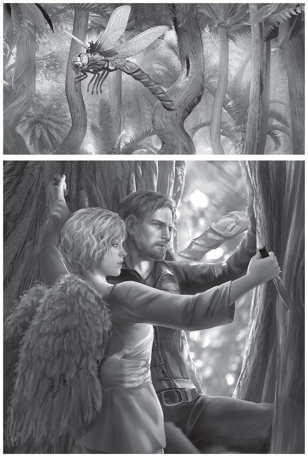 А когда открыла, поняла, что звук был реальным. Прямо напротив принцессы, в витке ствола висела гигантская стрекоза. Крылья ее и издавали этот гул, двигаясь так быстро, что выглядели четырьмя смазанными веерами. Челюсть, способная перекусить Алинку, сжималась и разжималась, а два фасеточных глаза, казалось, смотрели прямо на нее.