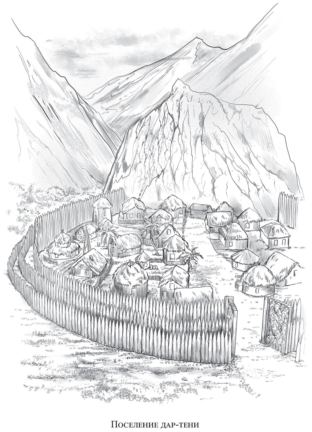 Поселение, к которому вела начинающаяся еще в лесу дорога, оказалось окружено высоченным частоколом из нескольких рядов стволов со срубленными наискосок верхушками. Ближе к лесу находились стволы пониже, следующий ряд – выше, следующий – еще выше. Лес подходил почти вплотную к ограде, хотя Алина увидела у стен и небольшие возделанные поля, на которых под закатным солнцем копошились люди – и женщины, и мужчины, и дети; в высокой траве виднелись спины мелких белых и пестрых коз.