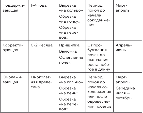 Рекомендуемые календарные сроки обрезки для средней полосы РФ: