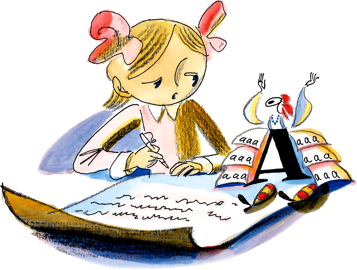 Аля писала письмо маме. Она очень старалась написать хорошо, но всё шло шиворот-навыворот: буквы не слушались, падали, менялись местами и ни за что не хотели браться за руки, точно они все друг с другом перессорились. Ну, просто наказание!