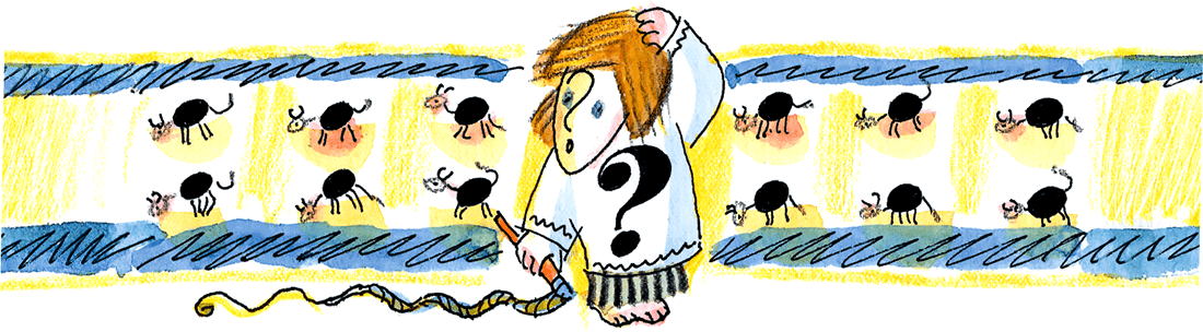Ну, наконец-то буква Б отступила! Аля и буква А вошли в ворота. За воротами зеленел лужок. На траве паслись двоеточия. За ними, щёлкая кнутом, ходил пастух вопросительный знак.