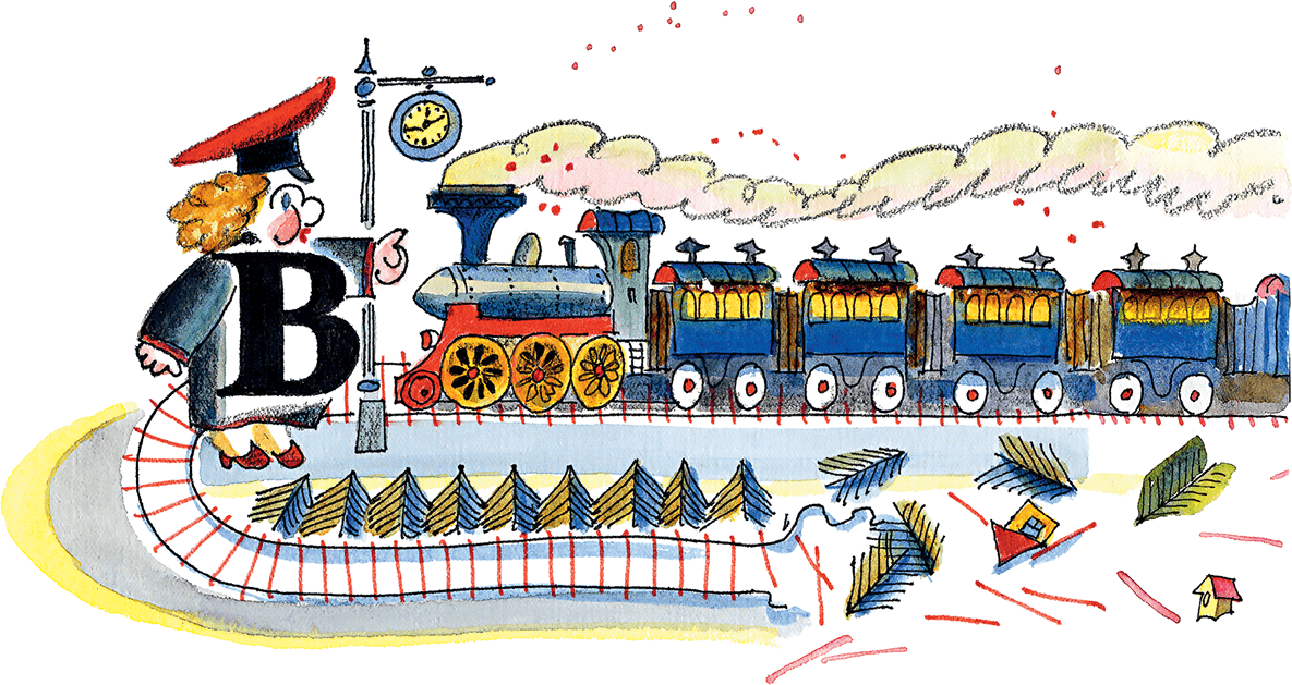 – Ты забыла: ведь у нас есть читатели! Они нас выручат из беды. За работу, дорогие читатели! Все на ремонт путей! Укладывайте шпалы! Заодно почините домики и насадите побольше ёлочек: дороге нужна лесозащитная полоса!
