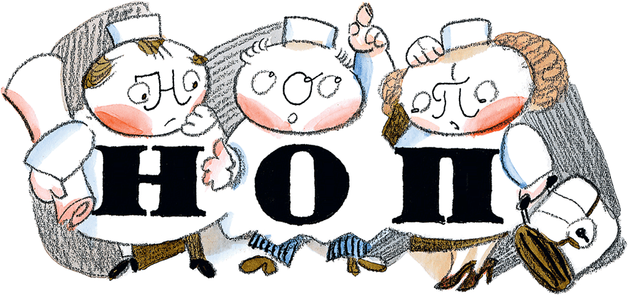 – Тсс! – зашикали на неё Н, О и П. Все трое были в белых халатах и белых шапочках. – Тихо! Идёт опыт.