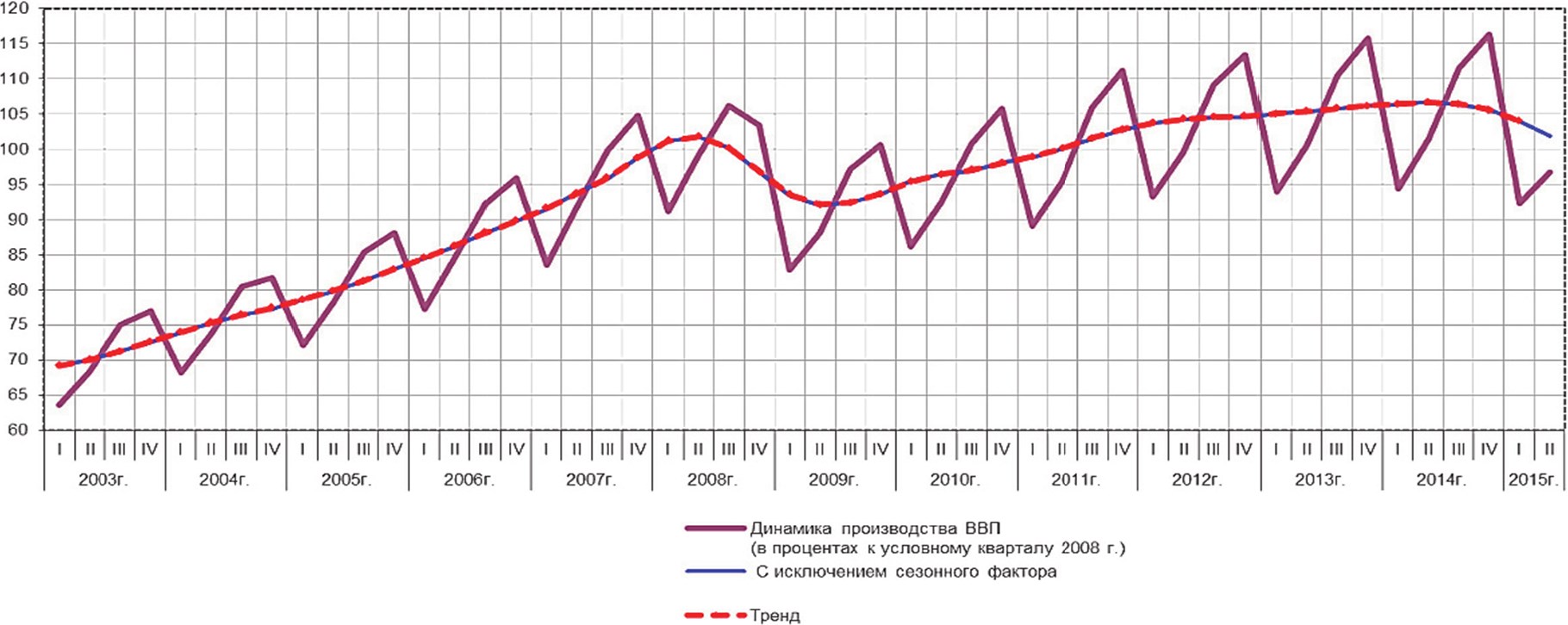 Рис. 2. Динамика ВВП России в 2003–2015 гг.7