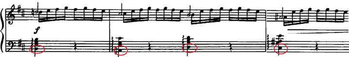 Аллегро написано в трехчастной форме и во второй части этой замечательной пьесы мы наблюдаем редчайший случай, когда композитор подписывает слова над нотами в инструментальной пьесе (текст под нотами подписывают только в вокальной музыке). Вот эти ноты:
